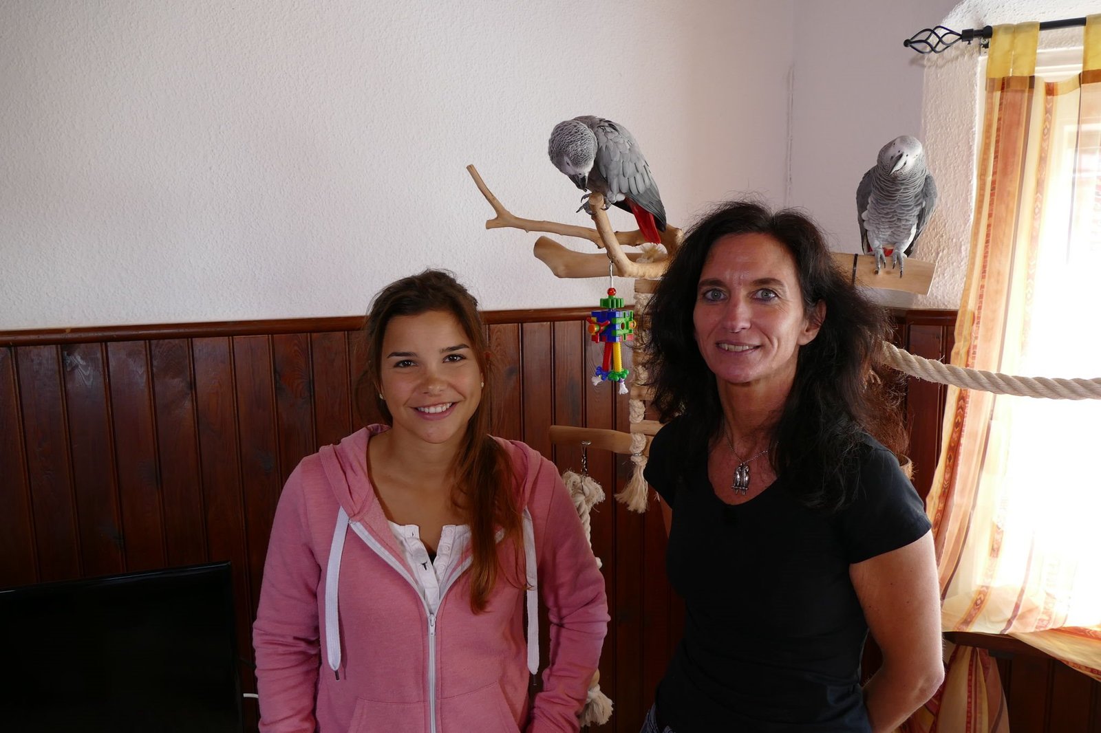 GraupapageiDie Graupapageien Cynthia und Rico halten sich gerne außerhalb ihres Käfigs auf. Hier haben sie Platz zum Fliegen.Bild: © BR/TEXT + BILD Medienproduktion GmbH & Co. KG