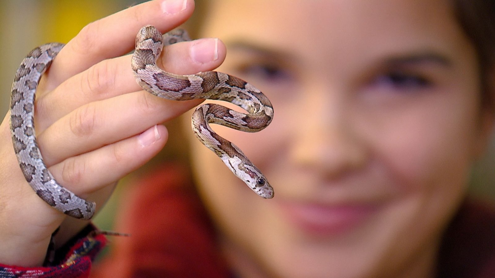 SchlangeKornnattern gibt es in vielen verschiedenen Farben, sie sind tolle Beobachtungstiere und man kann sie auch mal anfassen.Bild: © BR/TEXT + BILD Medienproduktion GmbH & Co. KG