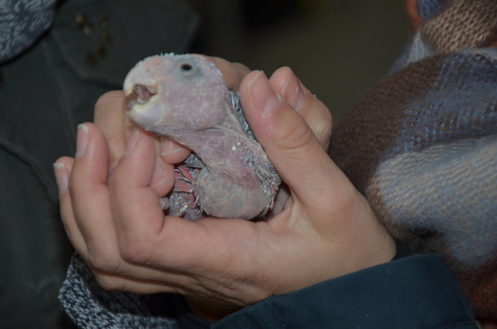KakaduAnna darf ein 3 Wochen altes Rosakakadu-Küken halten. Es fühlt sich ganz warm an. Erste Federn wachsen.Bild: © BR/TEXT + BILD Medienproduktion GmbH & Co. KG