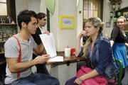 Zur Seite stehenNancy (Jil Funke, r.) hat eine Idee, als sich Kevin (Robert Hoffmann, l.) bei ihr um einen Job bewirbt.Bild: © Puls 8