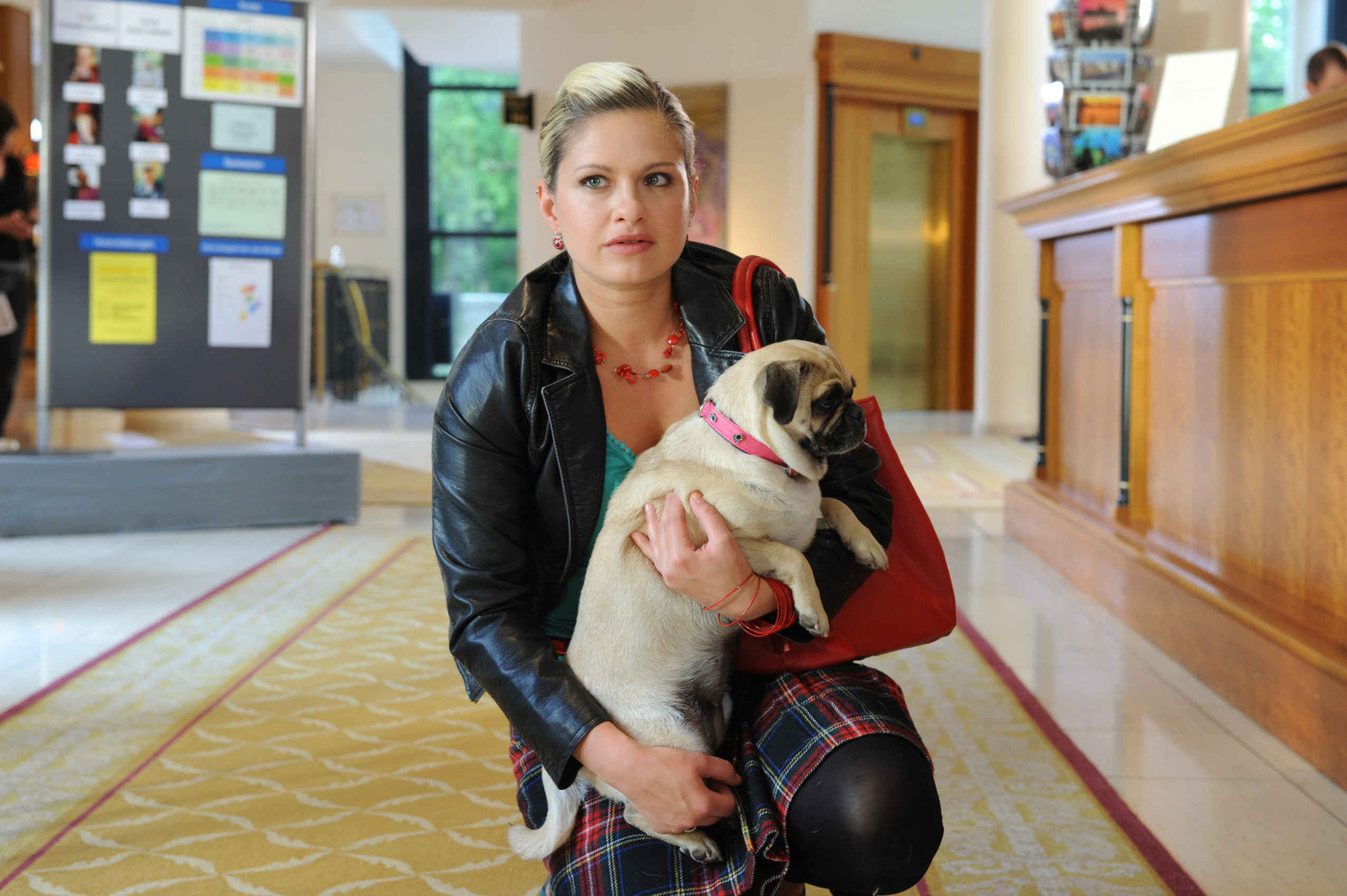 Der Schein trügtNatascha ist mehr als fassungslos, dass die Lanfords aufgrund eines Buchungsfehlers nicht kommen können. v.l.n.r.: Gerrit (Lars Löllmann), Nancy (Jil Funke), Natascha (Franziska Matthus), Robert (Mathieu Carrière)Bild: © Puls 8