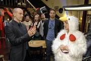 Das FotoshootingDank Annas (Jeanette Biedermann, r.) Hinweisen hat Katja (Karolina Lodyga, 2.v.r.) ihren Model-Einsatz zur großen Überraschung von Jonas (Roy Peter Link, l.) und Jannick (Mike Adler, 2.v.l.) bestanden ...Bild: © Puls 8