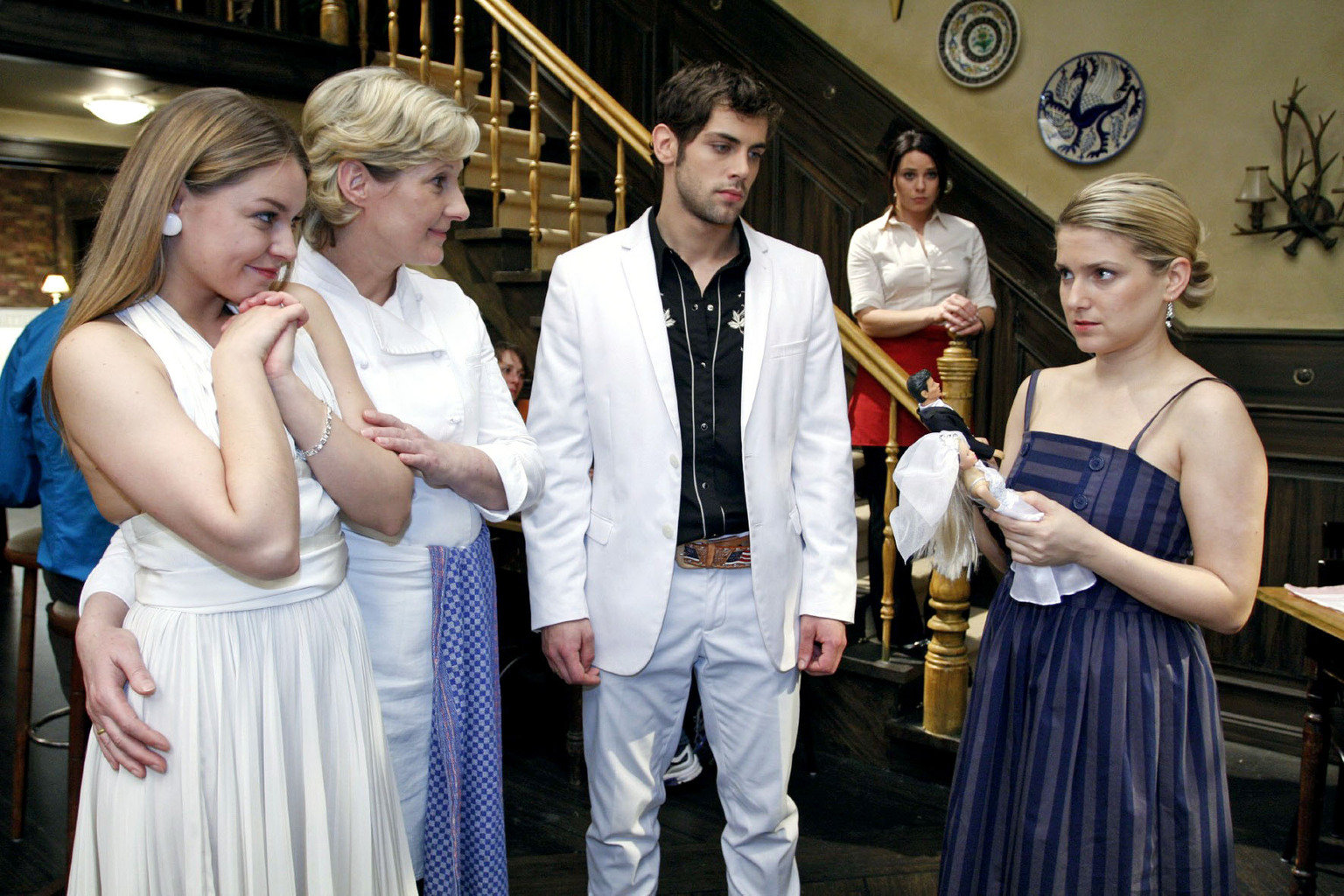 Hochzeit in Las VegasAnna ist wie vor den Kopf gestoßen, als sie von Katjas und Jonas' Eheschließung erfährt. v.l.n.r.: Katja (Karolina Lodyga), Susanne (Heike Jonca), Jonas (Roy Peter Link), Paloma (Maja Maneiro), Anna (Jeanette Biedermann)Bild: © Sat.1 Eigenproduktionsbild frei