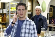AufklärungsarbeitAls Lily Lars (Alexander Klaws, l.) telefonisch vorwarnen will, ist es bereits zu spät - Robert (Mathieu Carrière, r.) steht im Coffeeshop.Bild: © Puls 8