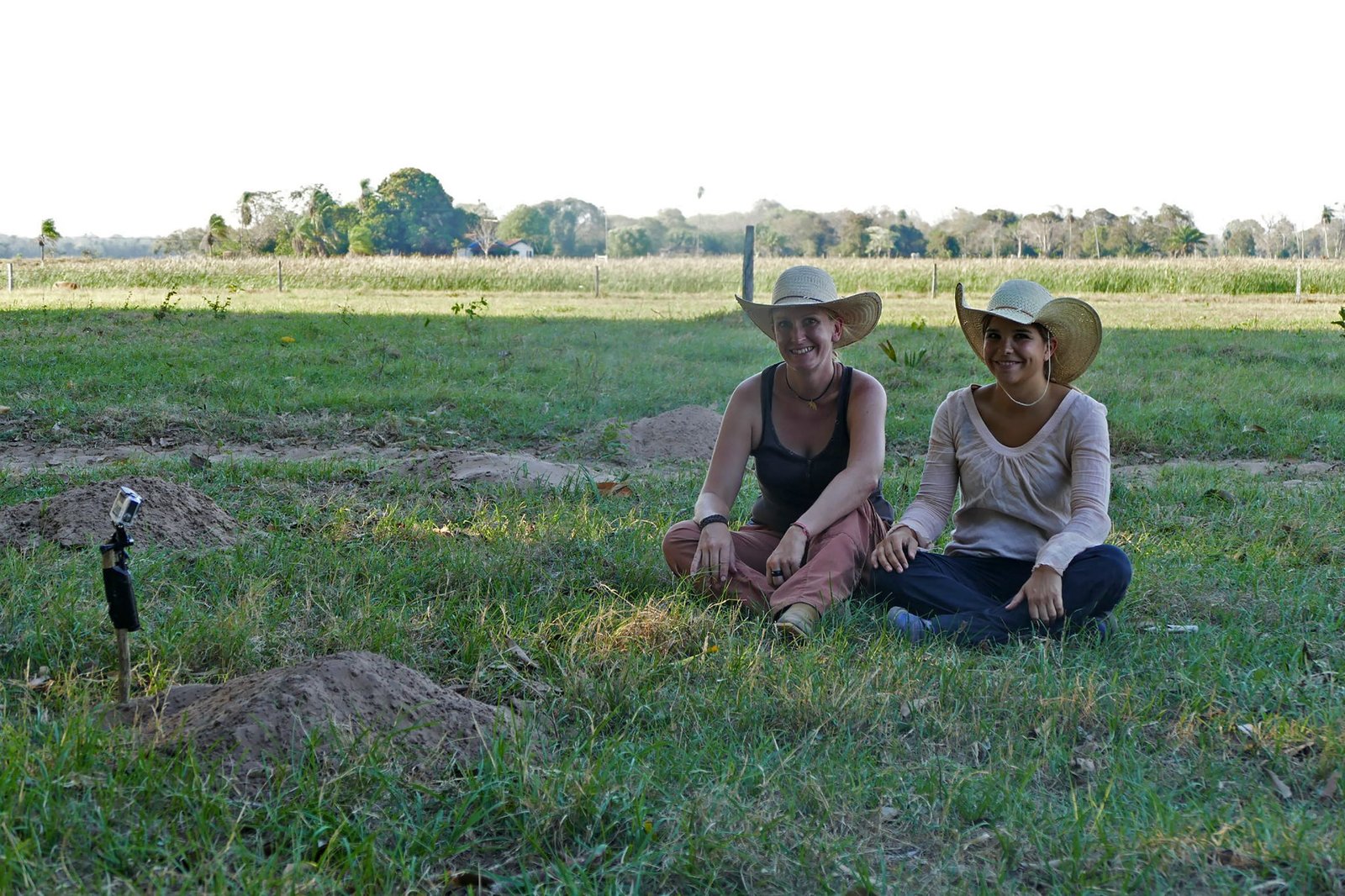 Willkommen in der GürteltierweltWarten auf das G??rteltier... Anna (rechts) und Biologin Lydia warten vor einem G??rteltierbau, der aussieht wie ein Maulwurfh??gel.Bild: © BR/BILD + TEXT Medienproduktion GmbH & Co. KG.