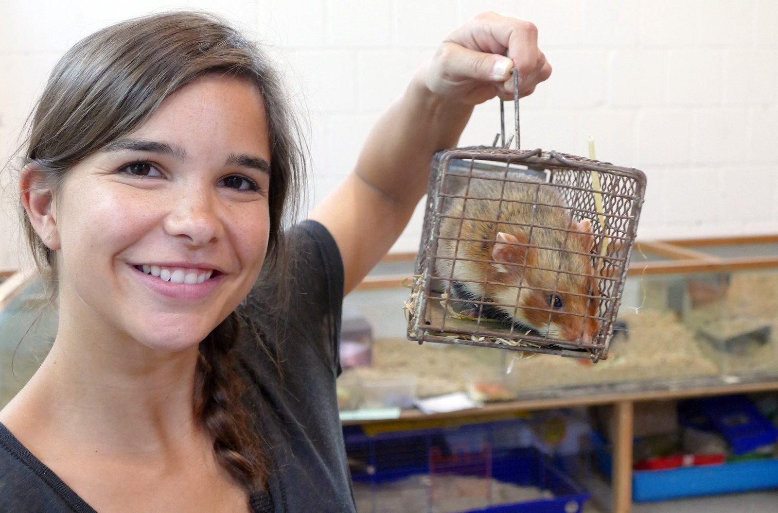 Wenn Feldhamster umziehenEin Feldhamsterweibchen ist in die Falle gegangen. Sobald Größe und Geschlecht ihres Wurfes bestimmt sind, darf sie wieder raus.Bild: © BR/Text und Bild Medienproduktion GmbH & Co. KG