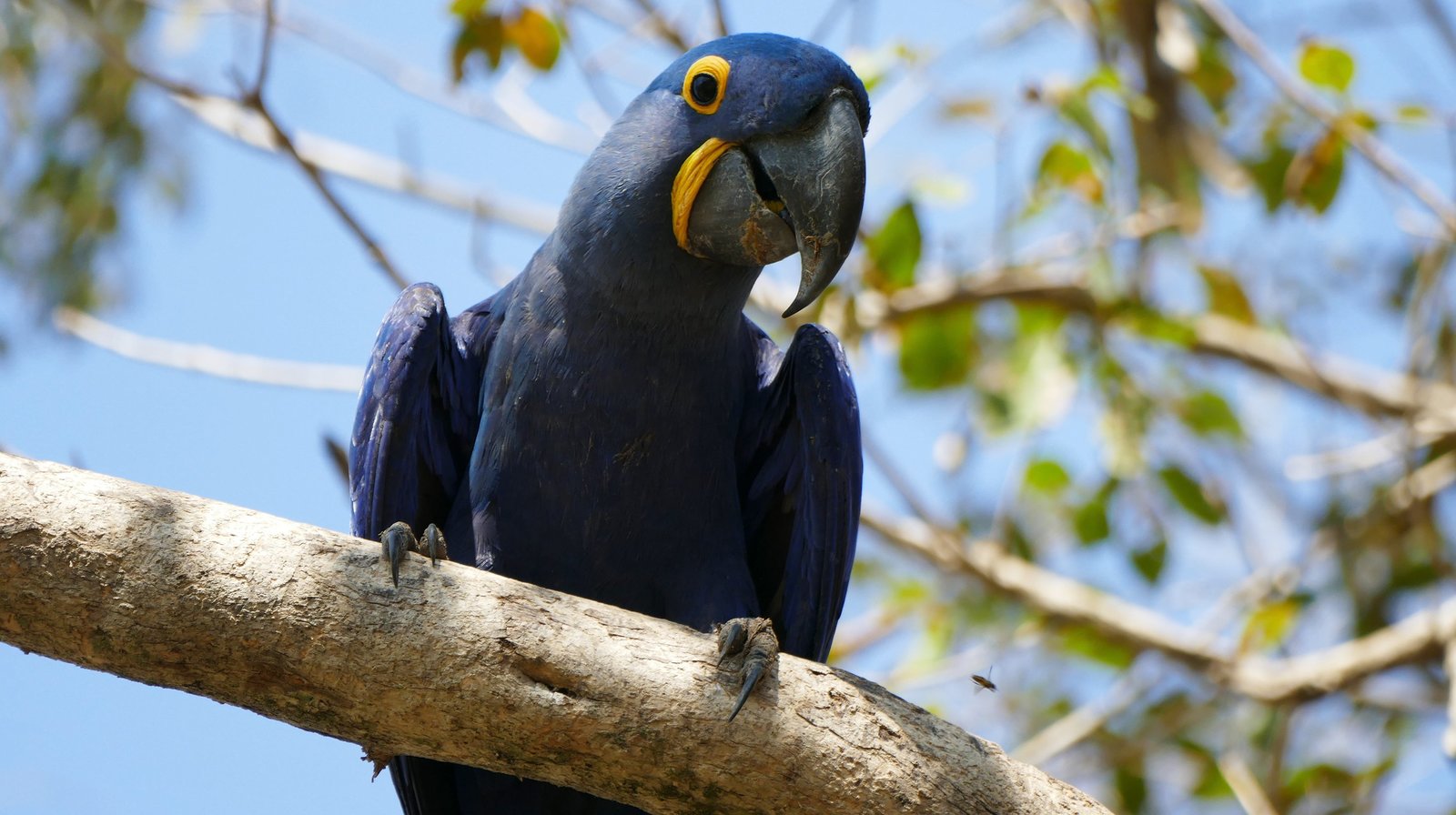Wo turtelt der Hyazinth-Ara?Der Hyazinth-Ara ist der größte Papagei der Erde: von Schwanzspitze bis Schnabel misst er einen Meter.Bild: © BR/Text und Bild Medienproduktion