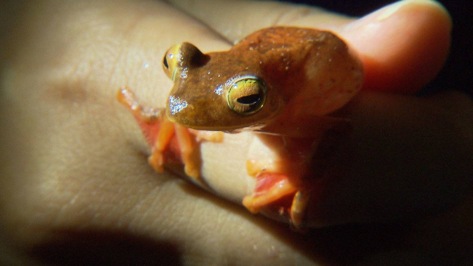 Welcher Frosch quakt nachts im Dschungel?Der Flugfrosch ist ein besonders schöner tropischer Frosch. Er lebt in Bäumen und hat Schwimmhäute, mit denen er von Ast zu Ast gleiten kann.Bild: © BR/BILD + TEXT Medienproduktion GmbH & Co. KG