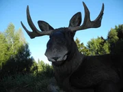 Vom Elch geknutschtAnna verabschiedet sich von Jörg und Norbert. Der Elchbulle hat sich zum Wiederkäuen hingelegt.Bild: © BR/TEXT + BILD Medienproduktion GmbH & Co. KG/
