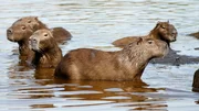 Warum bellt das Wasserschwein?Das halbe Leben verbringen die Nager im Wasser. Sie können sehr gut schwimmen und bis zu fünf Minuten die Luft anhalten und untertauchen.Bild: © BR/TEXT + BILD Medienproduktion/Ben Wolter