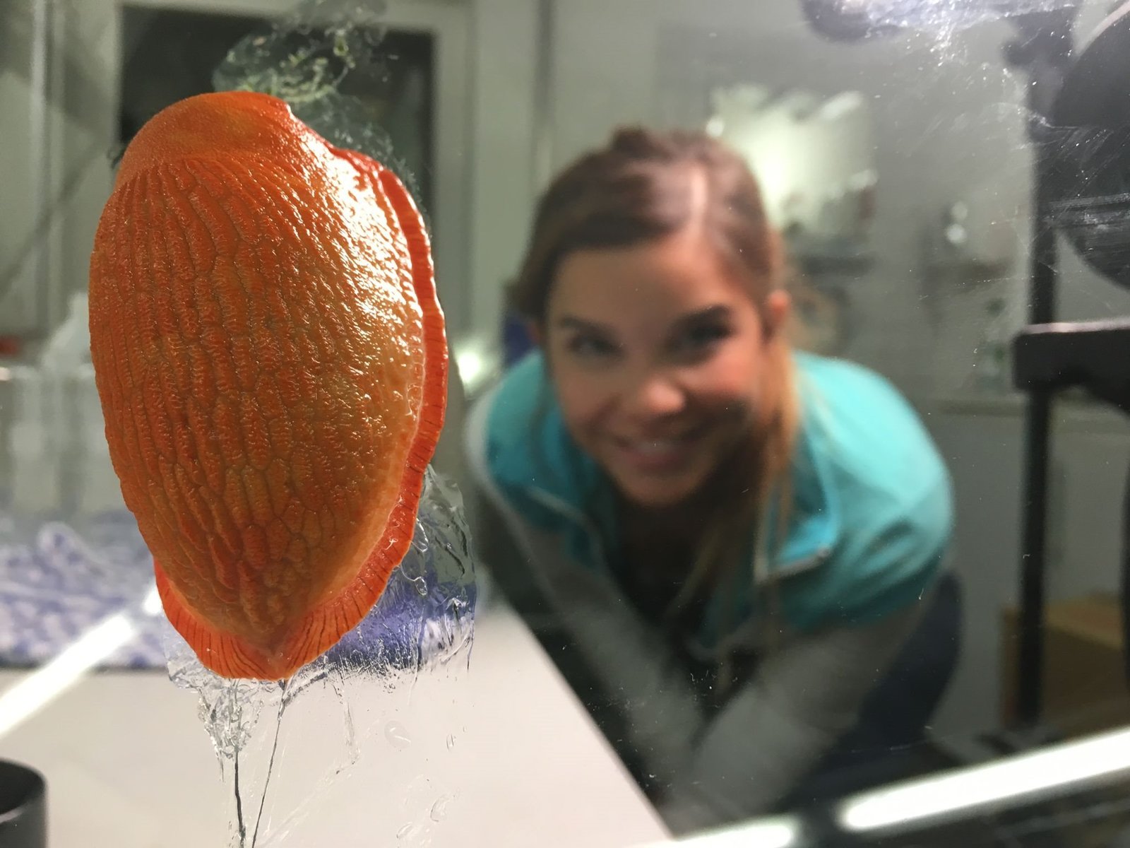 Schneckenkönig gesuchtDurch eine Glasscheibe schaut Anna einer Roten Wegschnecke beim Kriechen und Futtern zu. Mit ihrer Raspelzunge schiebt sich das Tier die Nahrung in den Schlund.Bild: © BR/TEXT + BILD Medienproduktion GmbH & Co. KG/
