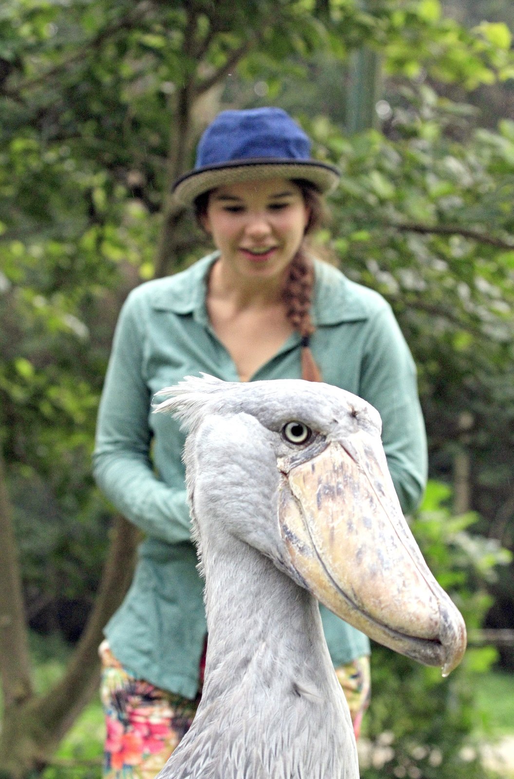Sushi, der SchuhschnabelAnna folgt Sushi auf dem Fuß und imitiert seinen schreitenden Gang.Bild: © BR/TEXT + BILD Medienproduktion