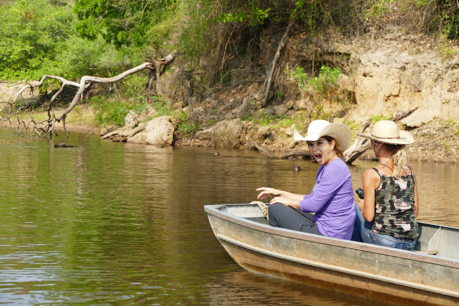 Wo steckt der Riesenotter?Auf dem Rio Negro im Pantanal begegnet Anna den neugierigen Riesenottern. Die Tiere sind ausgezeichnete Schwimmer und Taucher.Bild: © BR/BILD + TEXT Medienproduktion GmbH & Co. KG./Ben Wolter