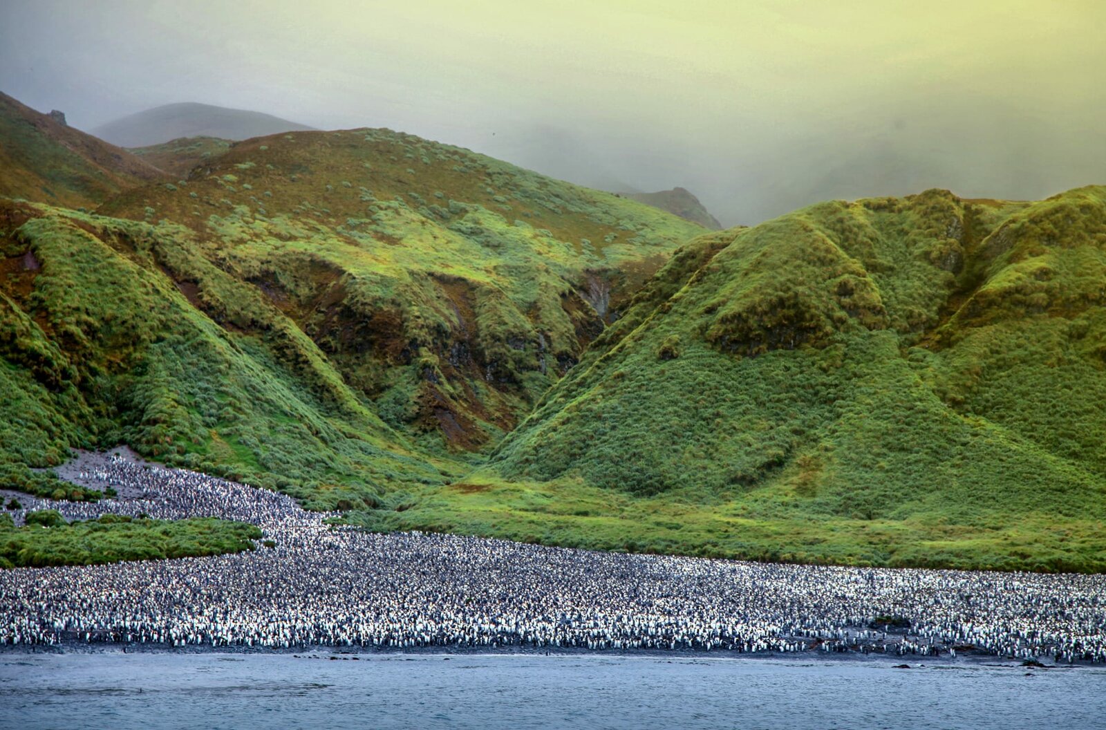 Die Verwandlung des weißen KontinentsKönigspinguine auf Macquarie Island: Hunderttausende von ihnen leben hier in Kolonien zusammen.Bild: © arte