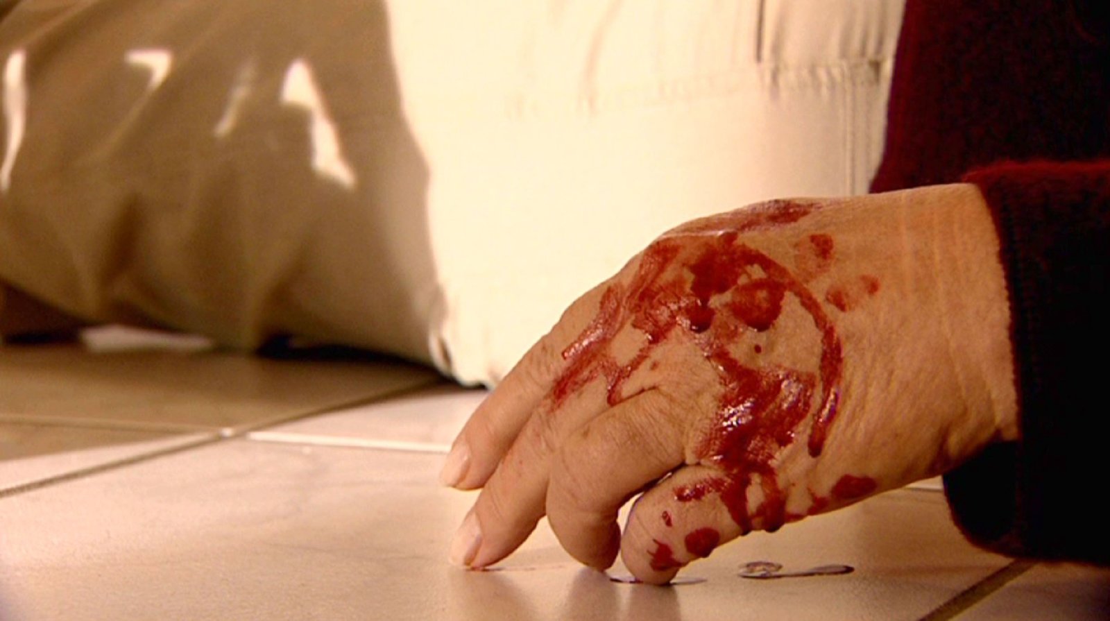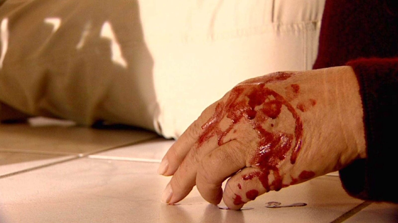 Eine Tochter hat ihre Mutter und deren Schwager tot in ihrer Wohnung gefunden. Anhand von Spuren wird der mögliche Tathergang rekonstruiert (Täter und Opfer Komparsen).Bild: © TVNOW