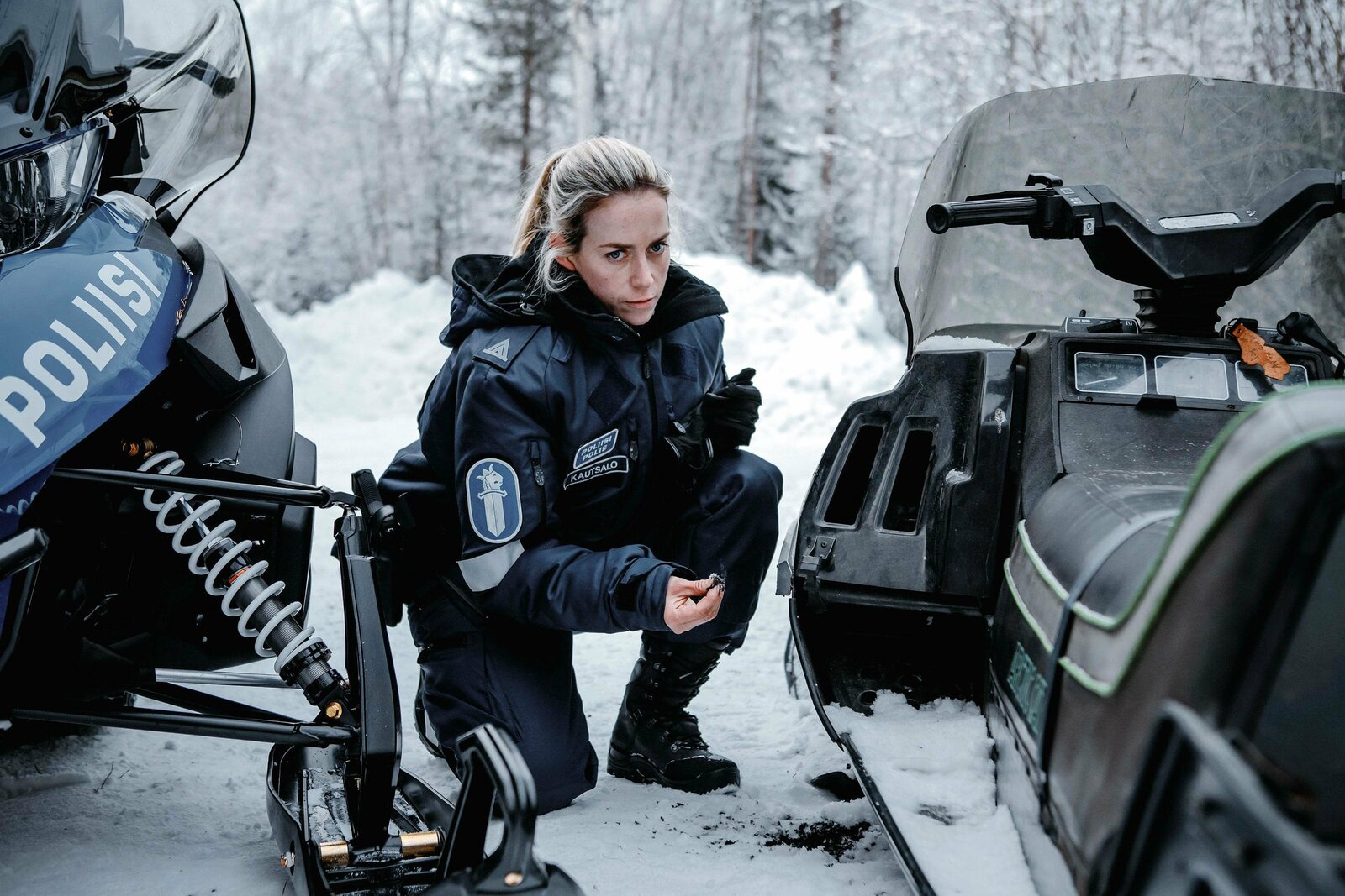 Die Jagd beginntNina Kautsalo (Iina Kuustonen) und ihr Kollege Niilo Aikio (Janne Kataja) suchen das Versteck der russischen Schleuser.Bild: © RTS Un