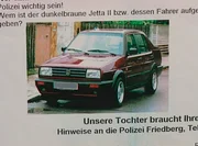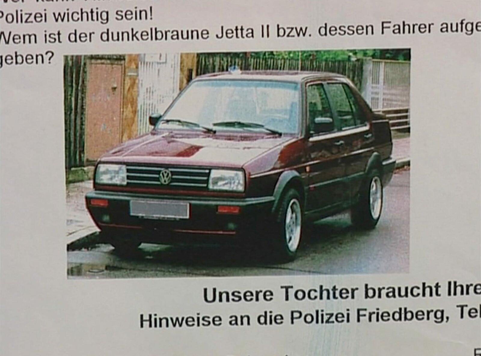Auf den Spuren eines Kindermörders (1)Fahnungsplakat nach dem VW Jetta, dem vermeintlichen Täterfahrzeug.Bild: © HR/Polizei Friedberg