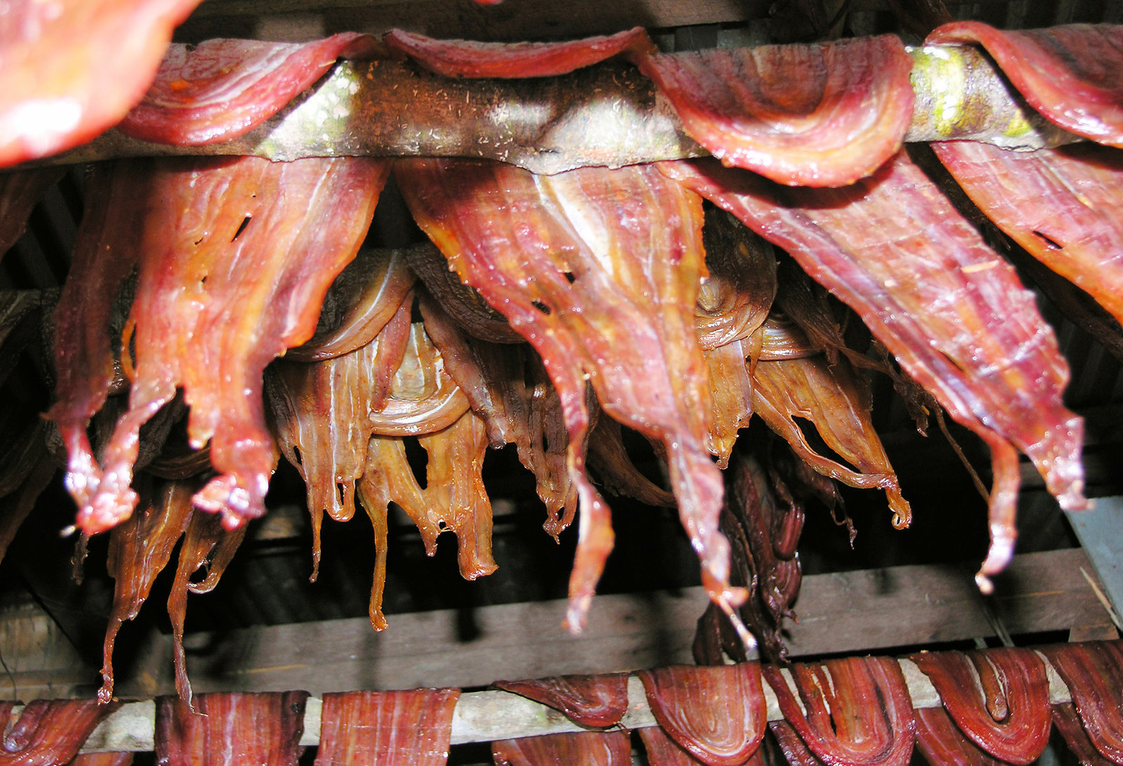 Auf Schlangenfang in KambodschaWegen Überfischung werden zunehmend auch Wasserschlangen zum Nahrungsmittel der Menschen am Tonle Sap See im Nordwesten Kambodschas. Ihr Fleisch wird zum Trocknen aufgehängt.Bild: © ARTE / © Medienkontor FFP