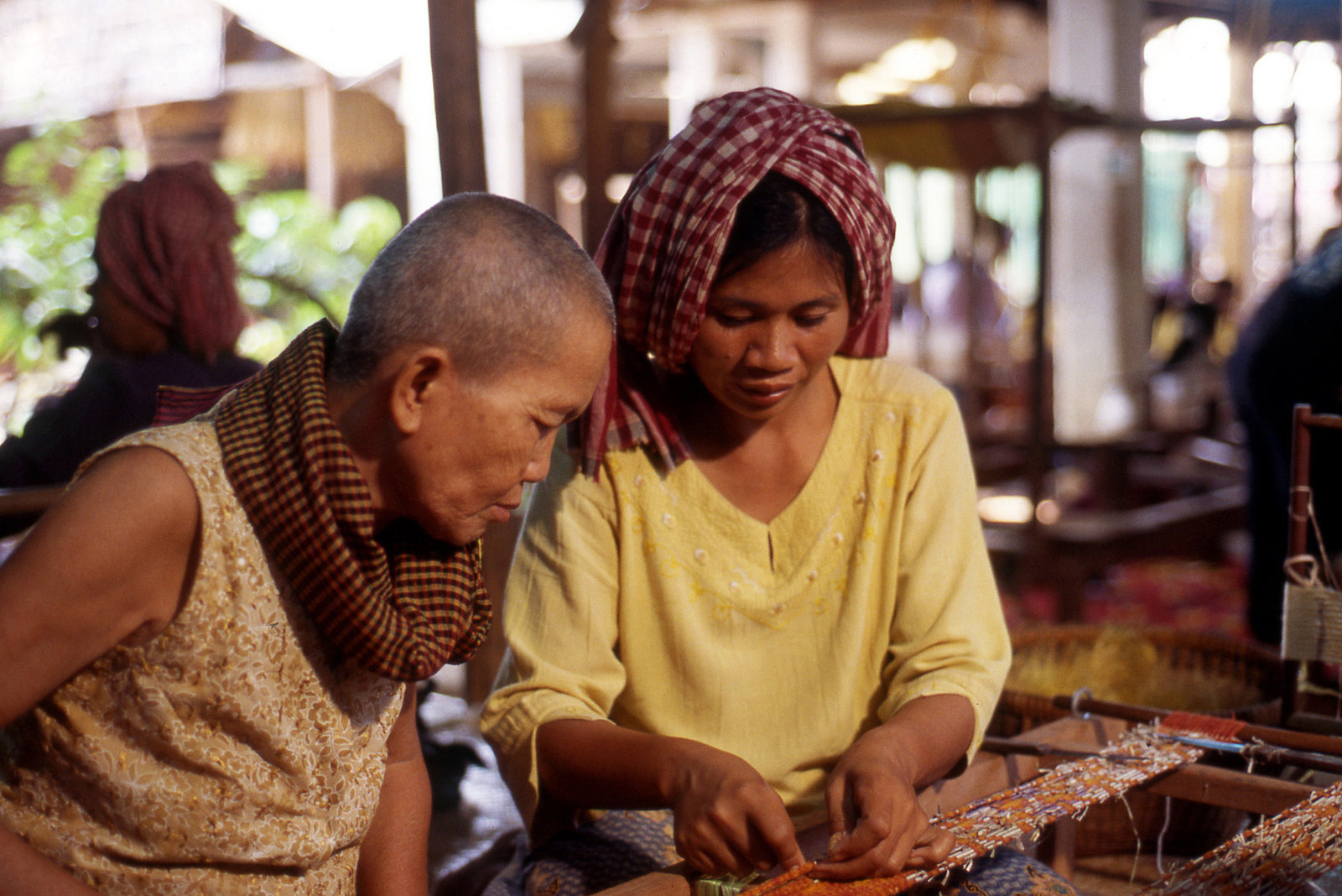 Kambodscha - Die Seele der SeideDie alte Om Soth bringt Phorn Loan die Jahrhunderte alte kambodschanische Webkunst bei.Bild: © ARTE / © Medienkontor FFP