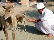 Das Volk der Bishnoi - Tierliebe bis in den TodRamniswas Budhnagar lebt in einem Dorf rund 50 Kilometer von der Stadt Jodhpur entfernt. Jeden Morgen füttert er die Gazellen am Dorfrand.Bild: © ARTE / © MedienKontor FFP/Roberto Lugones
