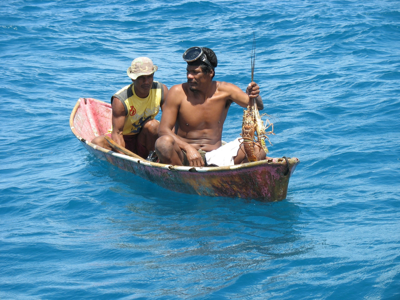 Nicaragua: Fluch der LangustentaucherLangustentaucher Alan Padilla mit seinem Sohn im eigenen Boot. Die Fangsaison ist fast vorbeiBild: © ARTE / © Medienkontor FFP/Frank Kleemann