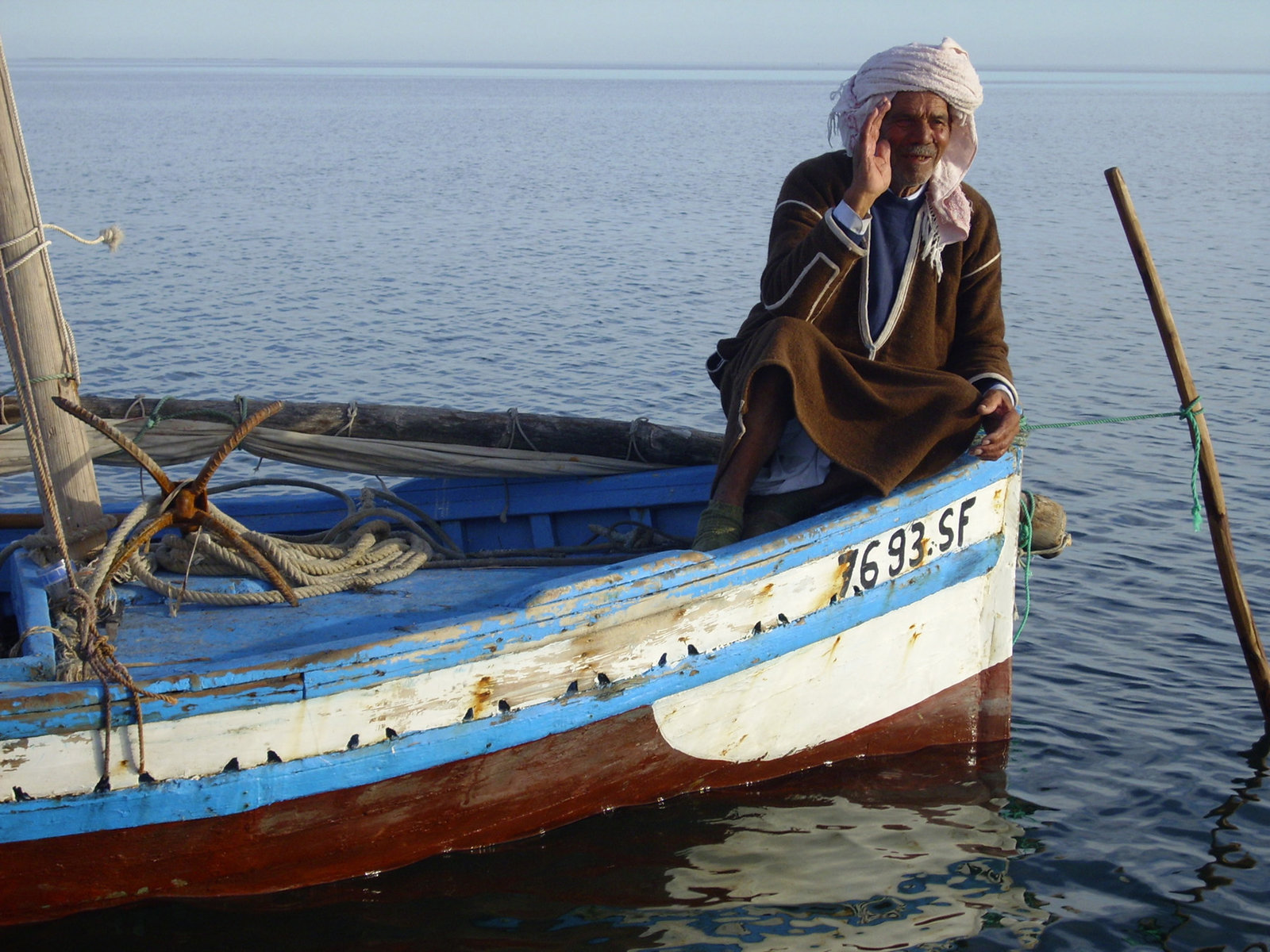 Tunesien: Die Suche nach dem TintenfischMohammed fährt nur wenige Kilometer aufs Meer hinaus. Auf den Kerkenna-Inseln - 250 Kilometer südöstlich von Tunis - hat jeder Fischer sein eigenes Revier gepachtet, in dem nur er fangen darf.Bild: © ARTE / © Medienkontor FFP/Regina Niedenzu