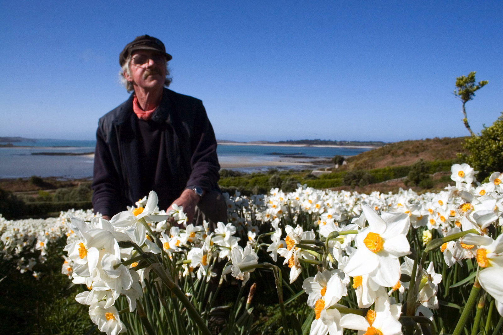 Die Narzisseninsel vor CornwallKeith Low ist seit Jahrzehnten Vorarbeiter auf der Narzissenfarm. In Kürze geht er in Pension.Bild: © ARTE / © Medienkontor FFP