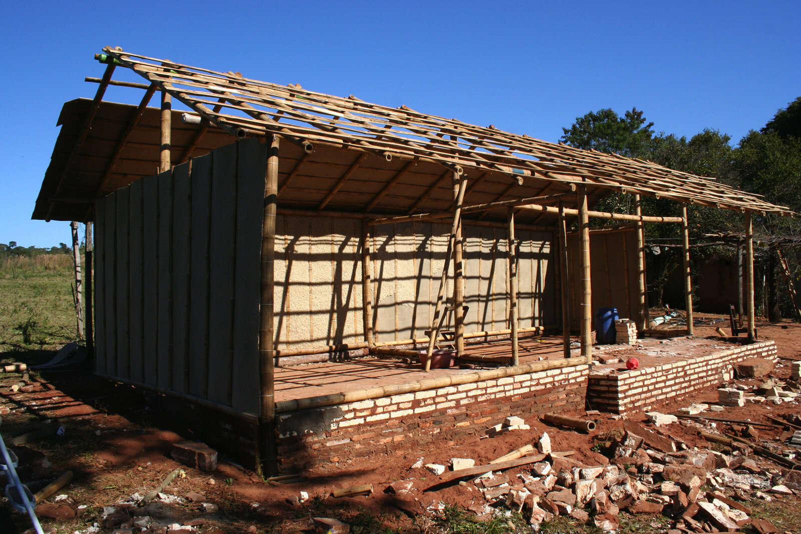 Paraguays neue HäuserDie neueste Idee: Der Luffa-Abfall könnte in Verbindung mit recyceltem Plastikmüll zu stabilen Hauswänden verbunden werden. Das erste Haus aus Luffa und Bambus ist fast fertigBild: © arte