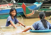 Auf Schlangenfang in KambodschaWenn sich in der Regenzeit der Tonle Sap See auf das Fünffache seiner Trockengröße ausdehnt, ist der 13-jährigen Soun Voth jedes schwimmende Fortbewegungsmittel recht.Bild: © ARTE / © Medienkontor FFP
