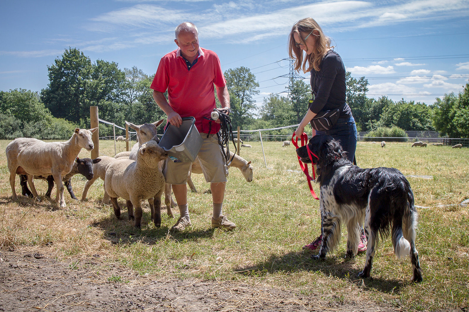 Der Hundeflüsterer der QueenTraining mit Schafen: Dr. Roger Mugford setzt seine Farmtiere für die Therapie schwieriger Hunde ein.Bild: © ARTE / © Medienkontor/Heiko De Groot