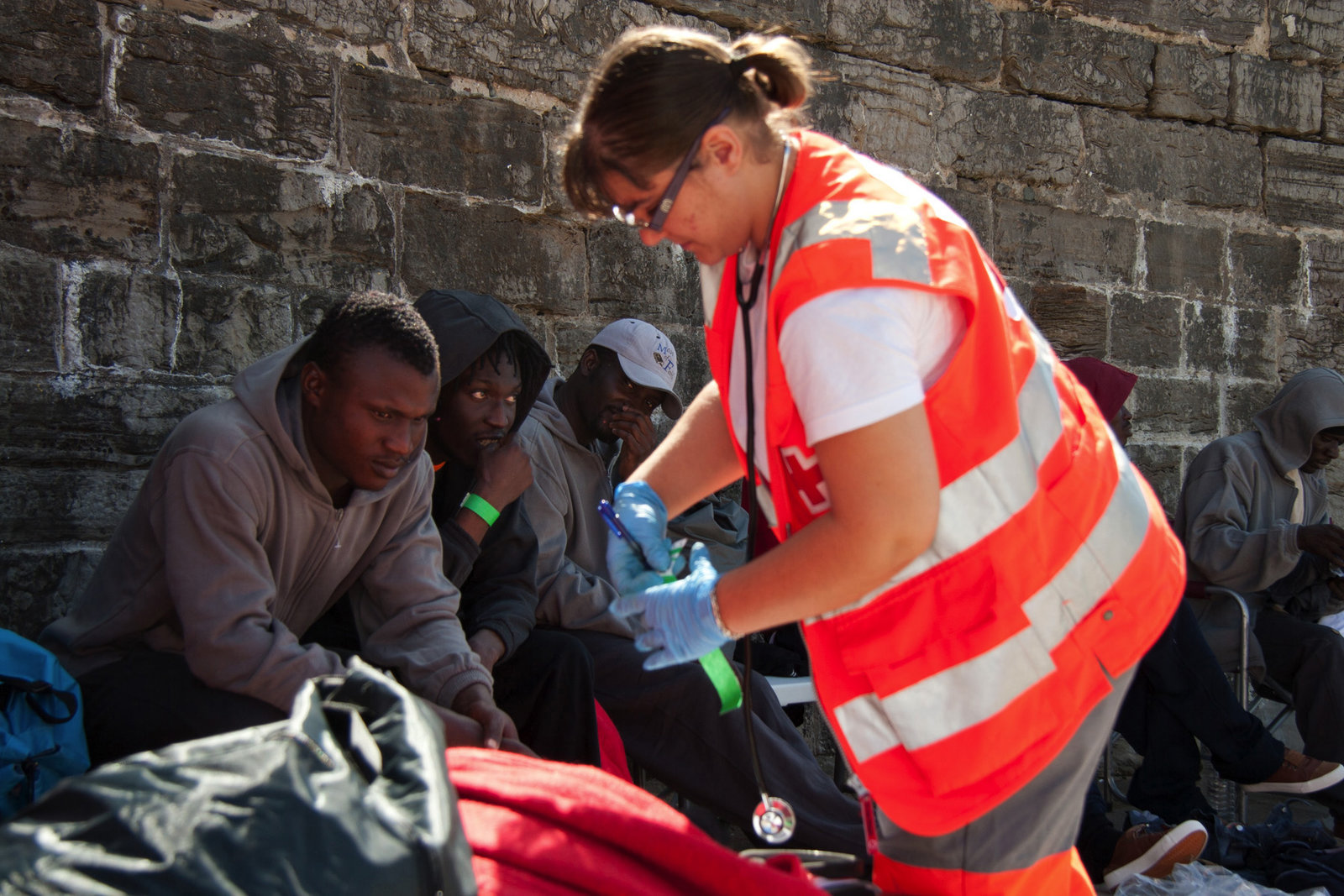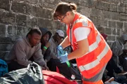 Eine Fähre nach AfrikaErschöpft - das Rote Kreuz versorgt Flüchtlinge an der Straße von Gibraltar.Bild: © ARTE / © MedienKontor FFP/Sven Jaax