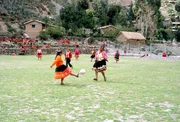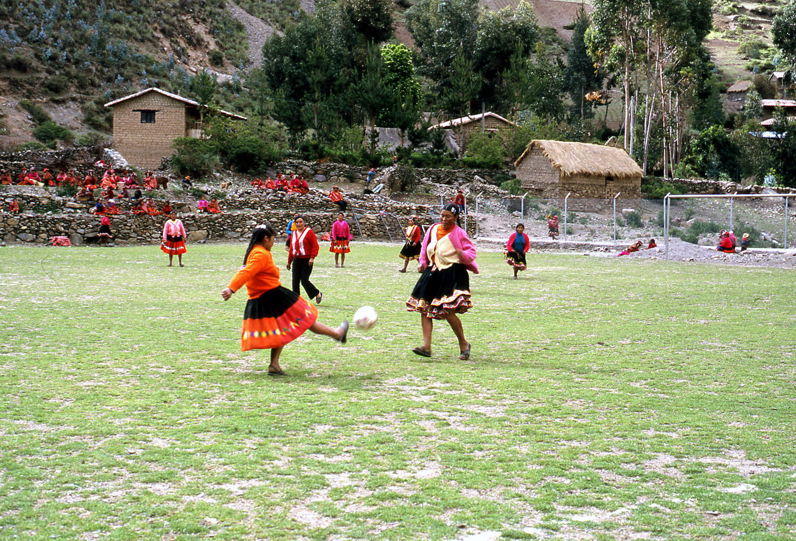 Churubamba - Frauen am BallDie Frauen aus Churubamba spielen in ihrer Alltagskleidung: in Sandalen und traditioneller TrachtBild: © ARTE G.E.I.E.