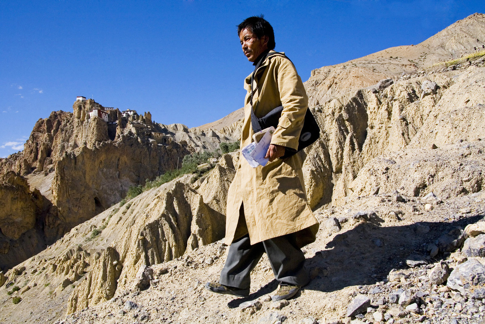 Postbote im HimalayaDilip Kumar ist der Postbote von Dankhar - und eigentlich ein wandelndes Postamt. Um den 300 Einwohnern den beschwerlichen Weg zum Postamt ins Tal zu ersparen, bringt er ihnen neben der Post auch Briefmarken, Umschläge und Geld von der Postbank.Bild: © ARTE