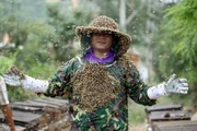 Die Honigsammler von YunnanImker Chen Chunfeng mit Bienenbart.Bild: © ARTE / © MedienKontor/J. Michael Schumacher