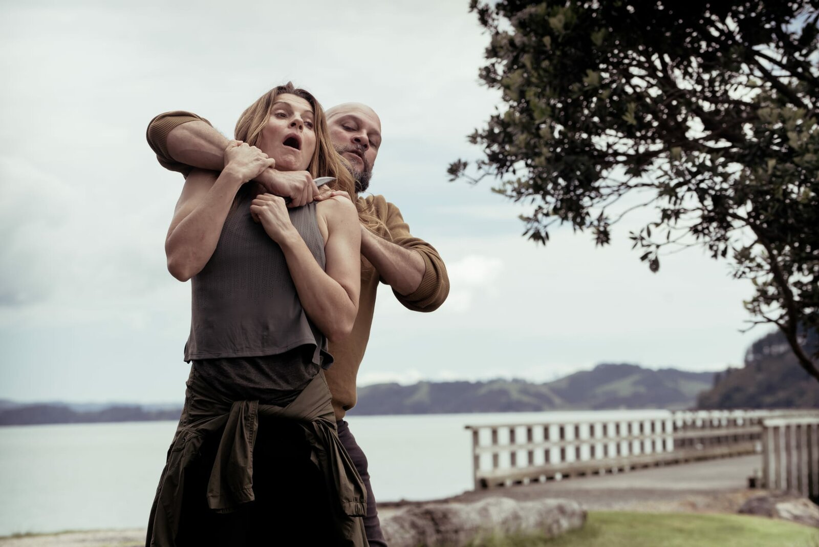 EnttarnungDenise (Alison Bruce) sieht, dass ihre Freundin Denise bedroht wird und feuert einen Schuss ab und erschießt den Angreifer. Durch den lauten Schuss und die Anspannung hat sie Ohrensausen und hört schlecht.Bild: © ZDF und Screentime New Zealand Limited.