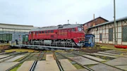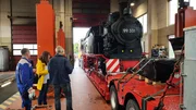 Die Taigatrommel auf der Drehscheibe des Historischen Bahnbetriebswerks Arnstadt. Sie ist eine von mehr als 20 Lokomotiven, die auf dem Gelände vom Verein betreut werden.Bild: © MDR