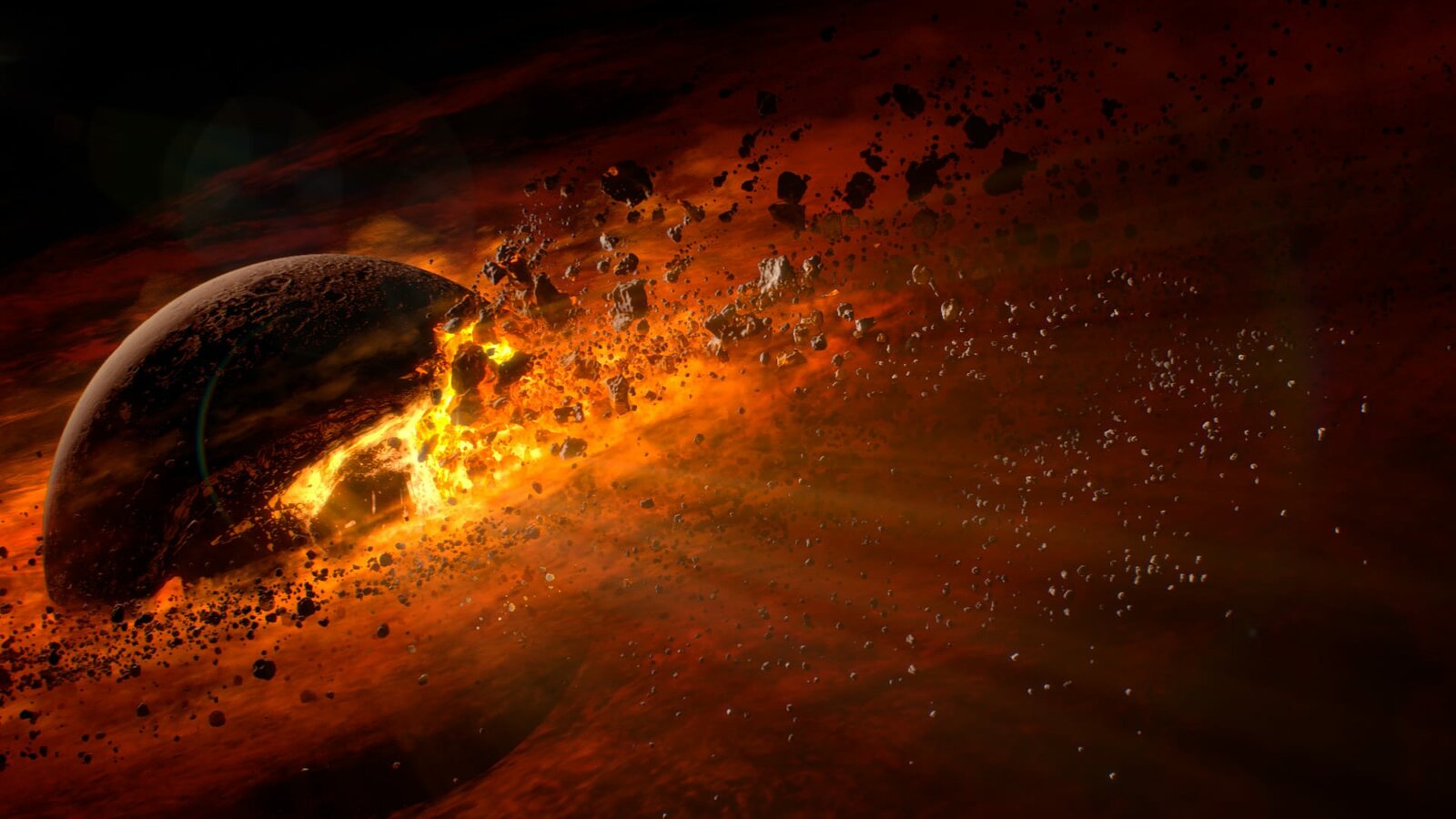 Der Mond - unser magischer TrabantKosmische Katastrophe: Der Mond wurde beim Einschlag eines gigantischen Himmelskörpers aus der Erde heraus gesprengt.Bild: © ZDF und Faber Courtial.