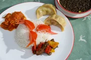 Am GroßglocknerDal Bhat, das Nepalesische Nationalgericht, ein Rezept von Nima Sherpas Mama, gekocht für Aufgetischt im Ammererhof in Rauris.Bild: © ORF2
