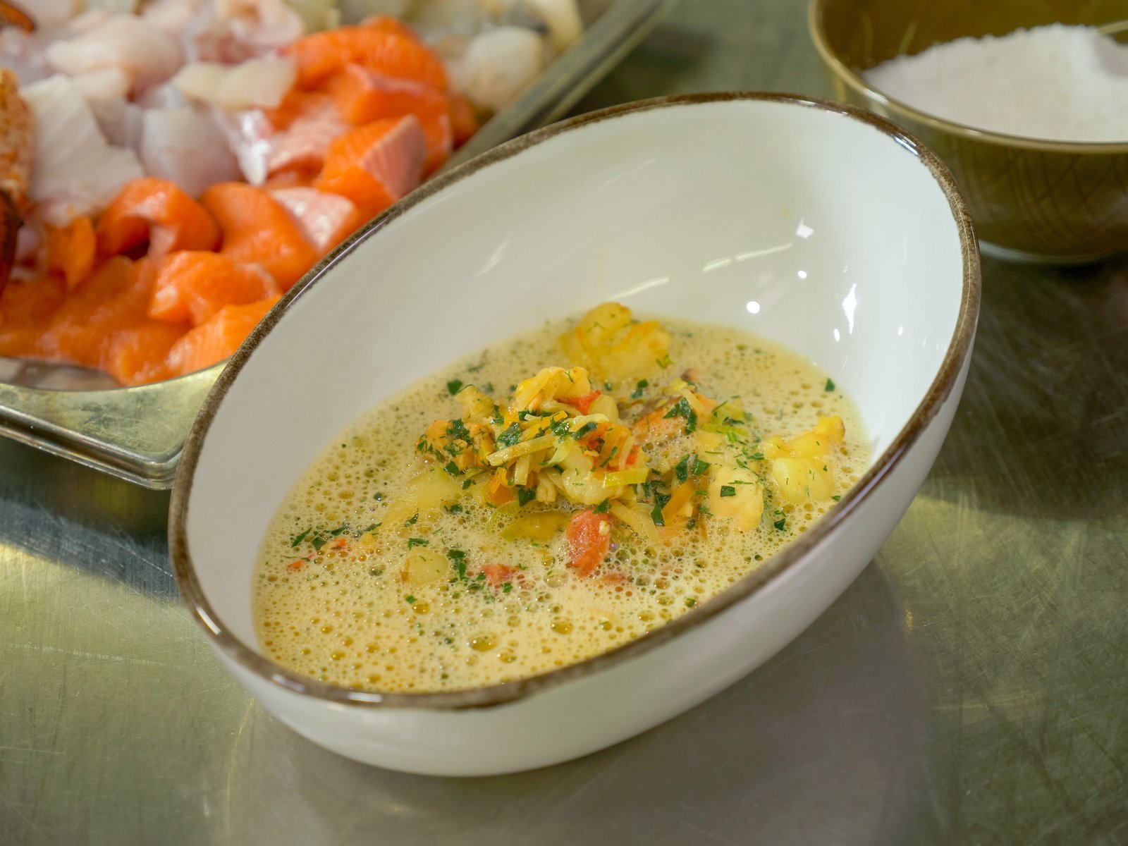 BludenzValentin Bargehrs „Signature dish“, die Fischsuppe, im berühmten „Rössle“ in Braz, am Eingang des Klostertals.Bild: © ORF 2