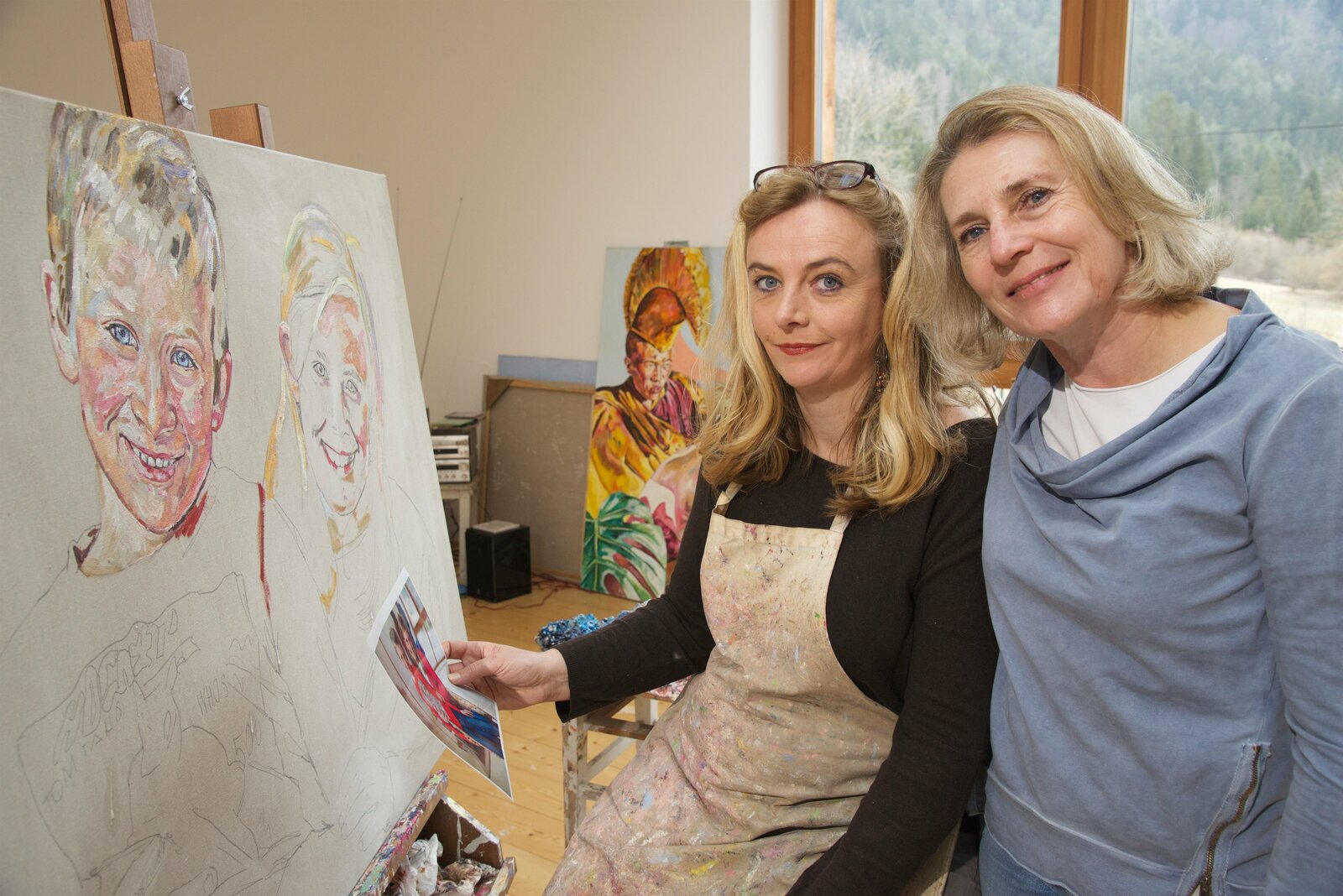 Rund um VillachKünstlerin Helga Druml mit Regisseurin Claudia Pöchlauer in ihrem Atelier in Nötsch.Bild: © ORF/Satel Film/Claus Muhr