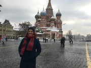 Folge 7/2018Moderatorin Antje Pieper vor der Basilius-Kathedrale in Moskau.Bild: © ZDF und Frederic Ulferts
