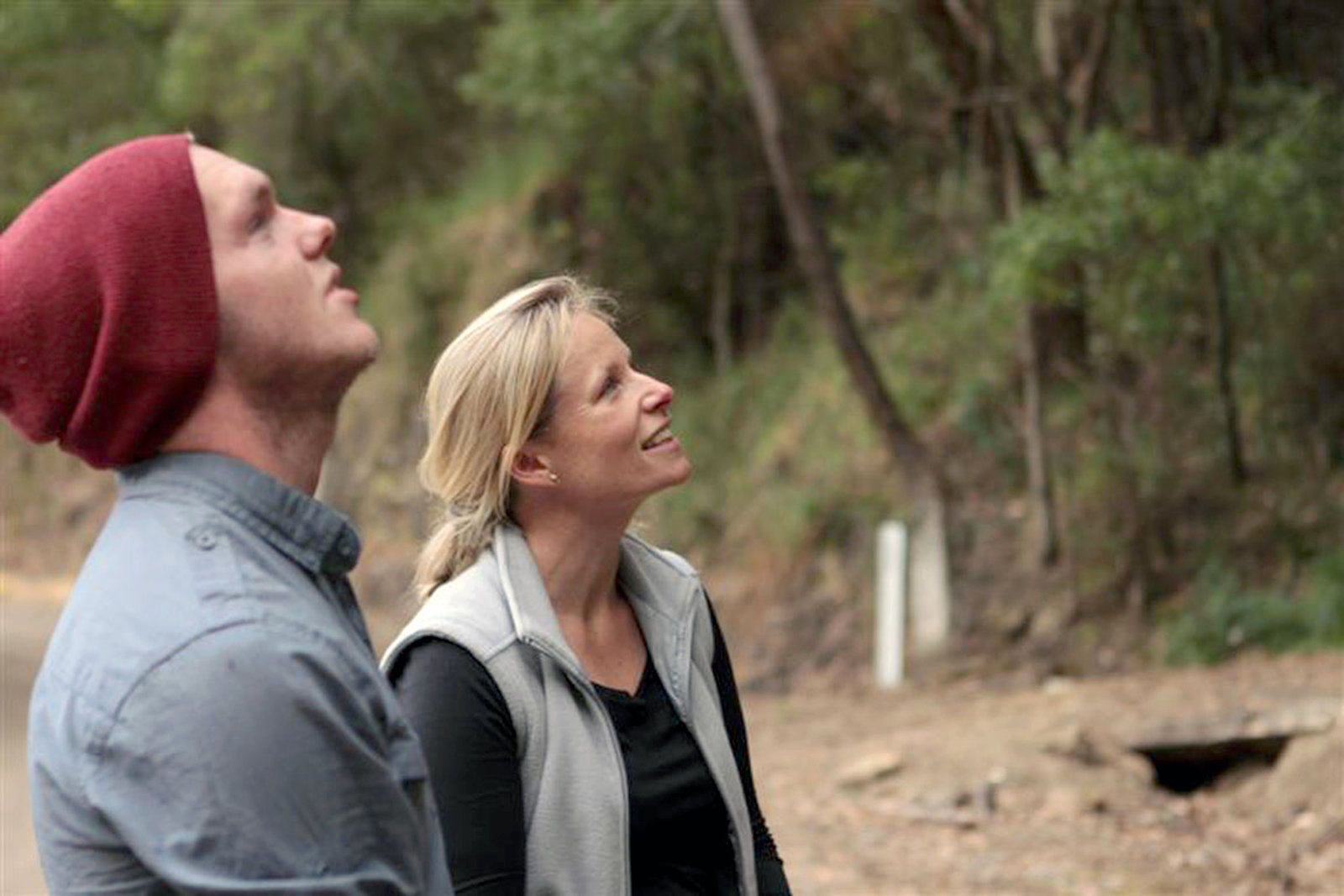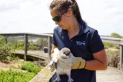 Von Surfern und KoalasLizzie Corke (re.) beobachtet den geheilten Koala.Bild: © ZDF / © Sabine Pollmeier