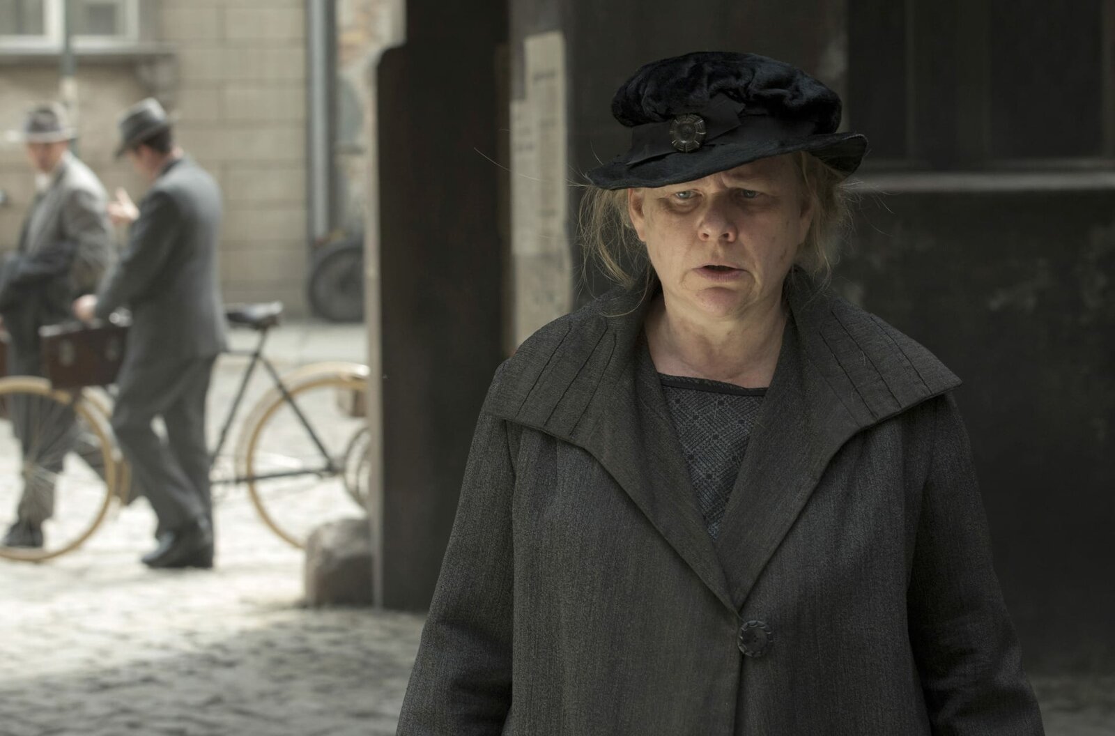Episode 3Minna Ritter (Hildegard Schroedter) im Hinterhof.Bild: © ARD Degeto/Beta Film/BR/Sky Deutschland/X-Filme/Frédéric Batier
