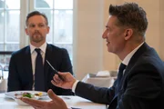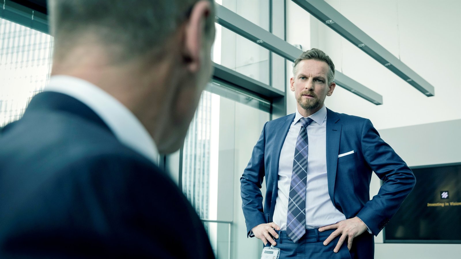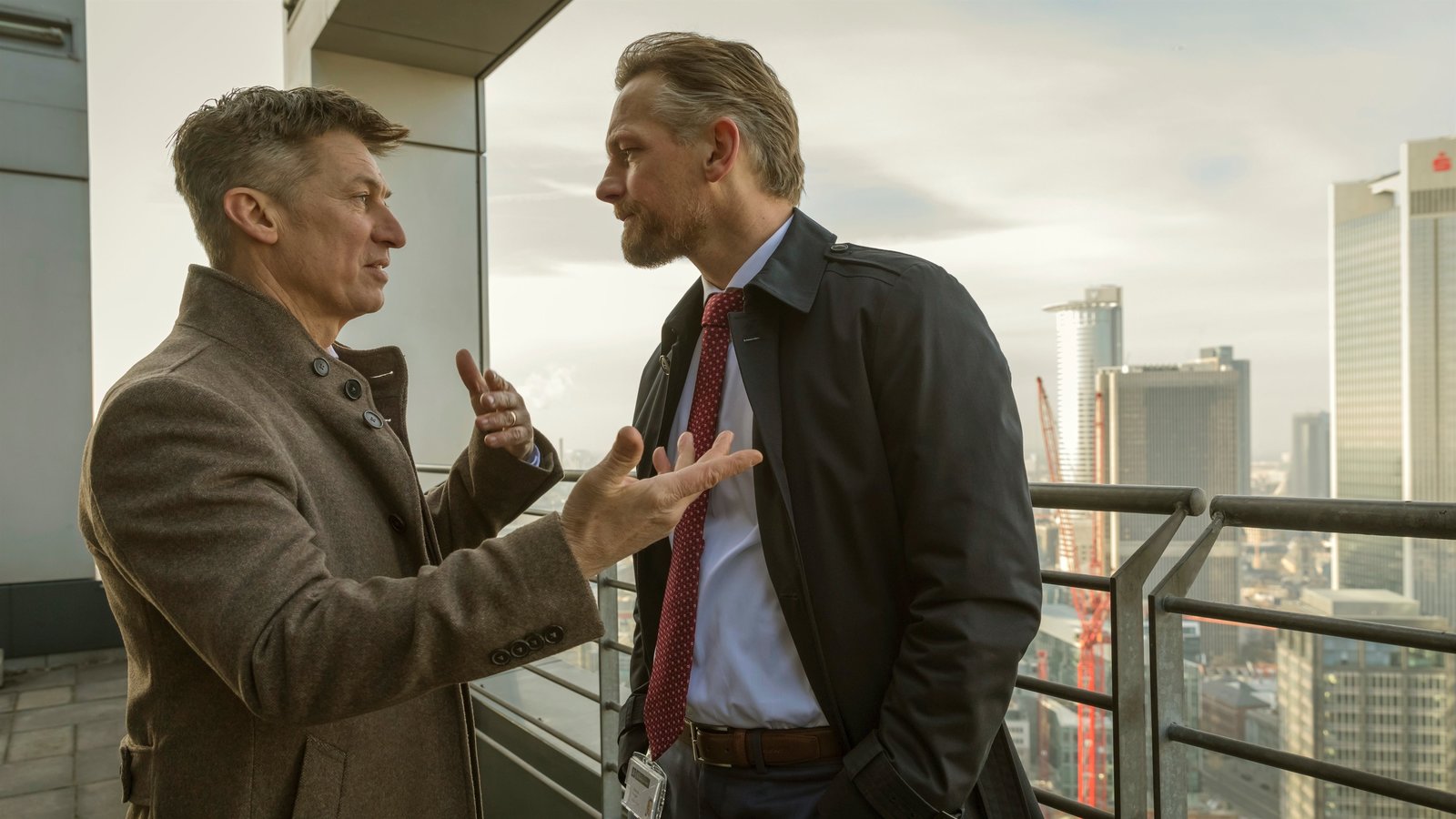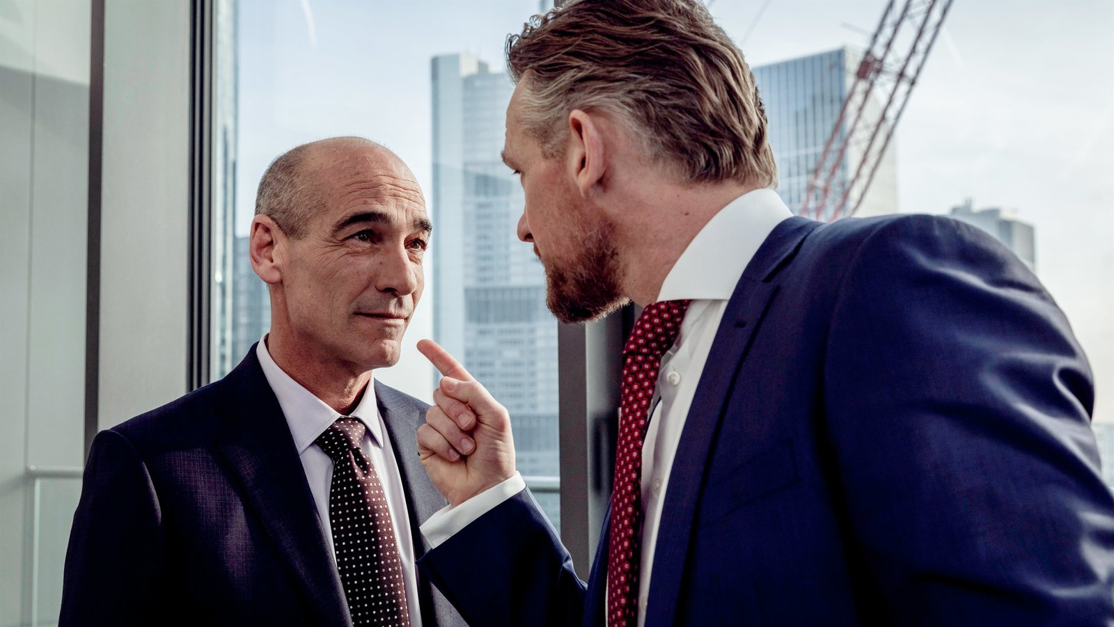 Alte SchuldenQuirin Sydow (Tobias Moretti, l.) konfrontiert Investmentchef Gabriel Fenger (Barry Atsma, r.) mit einem schwerwiegenden Verdacht.Bild: © ZDF und Ricardo Vaz Palma