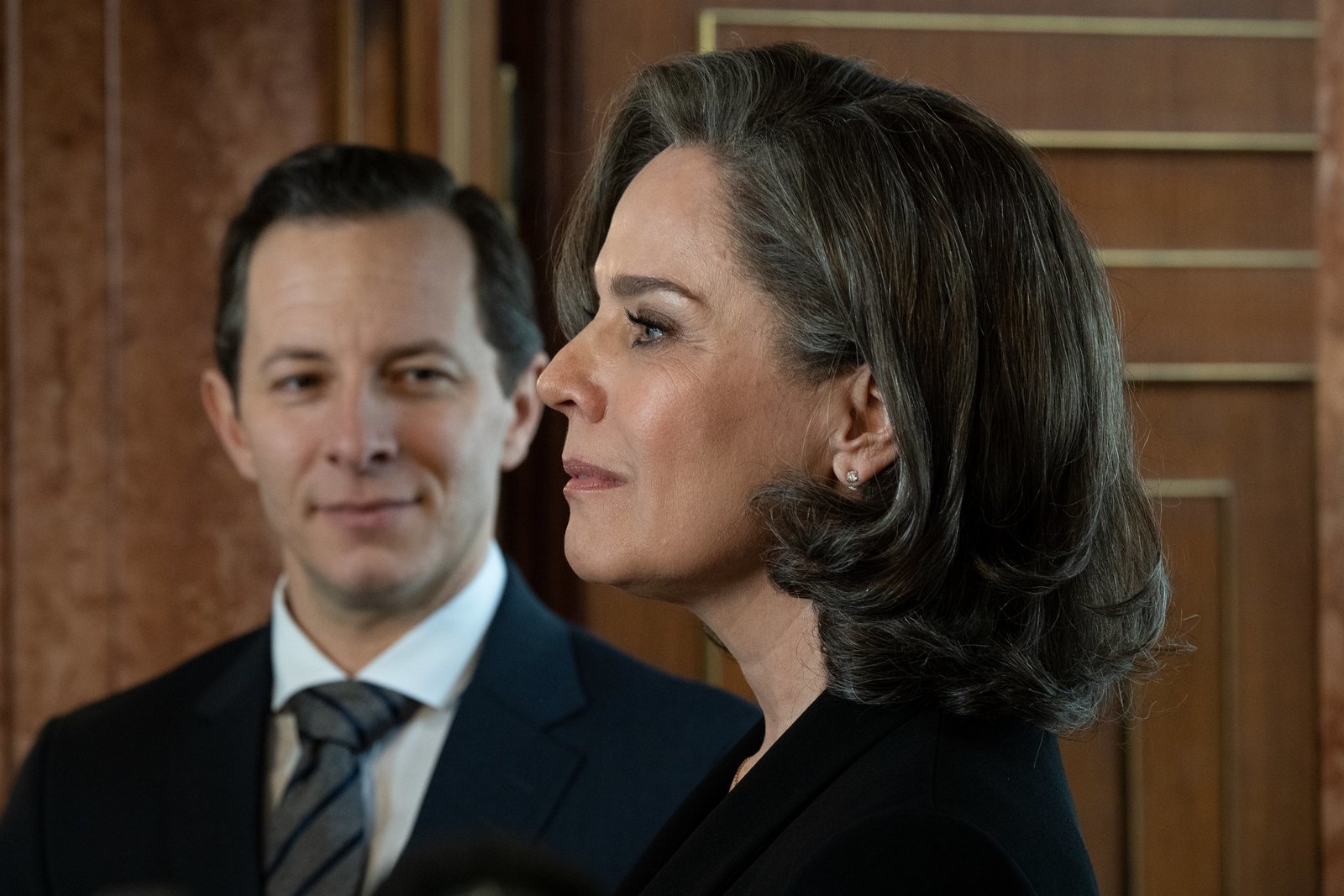 Long live the QueenChristelle Leblanc (Désirée Nosbusch) sucht die machtpolitische Nähe zum neuen Finanzminister Schunk (Trystan Pütter).Bild: © ZDF und Fabrizio Maltese.