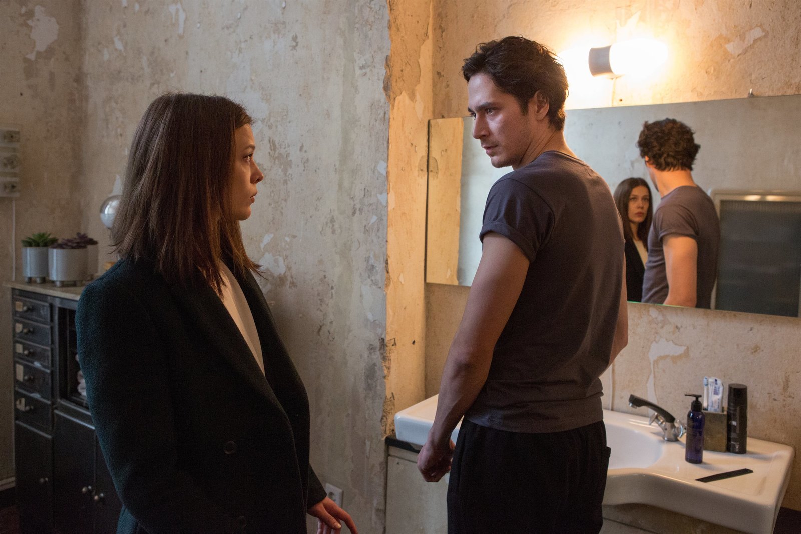 ParanoiaDie Kontrahenten Jana Liekam (Paula Beer) und Gabriel Fenger (Barry Atsma) treffen sich. Ist da noch etwas zwischen den beiden?Bild: © ZDF und Fabrizio Maltese.