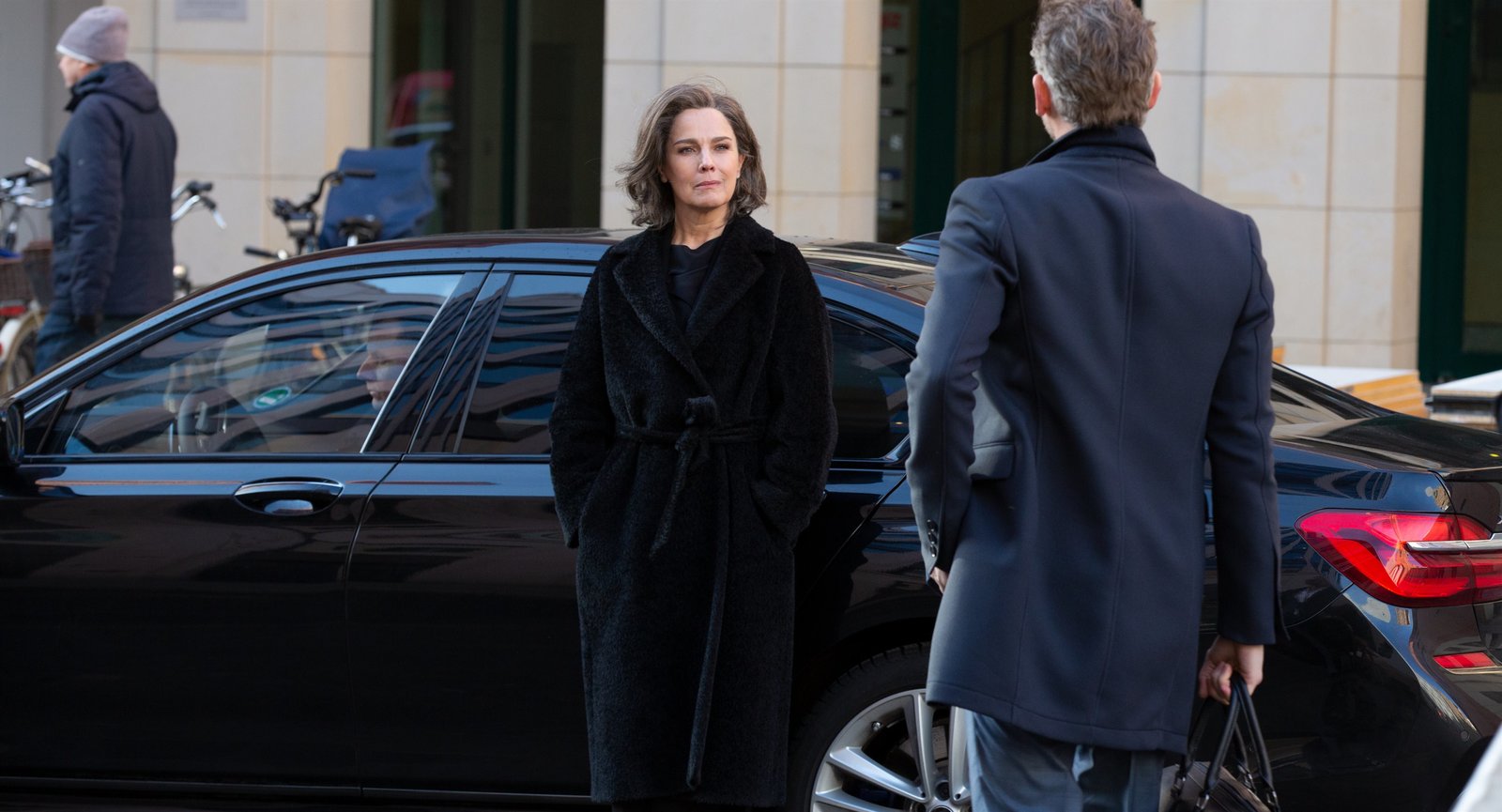 Die KündigungChristelle Leblanc (Désirée Nosbusch) leistet unerwartet Schützenhilfe: Sie verhilft einer ehemaligen Mitarbeiterin zu einem Job in der Frankfurter Global Invest und gibt ihr wertvolle Tipps.Bild: © ZDF und Ricardo Vaz Palma