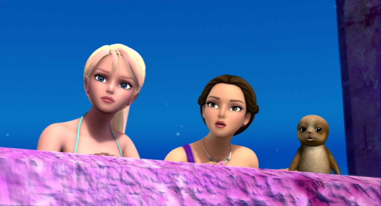 Das Geheimnis von OceanaMeliah (Barbie) und Delfin Zuma machen sich auf den Weg nach Oceana.Bild: © NBC-Universal