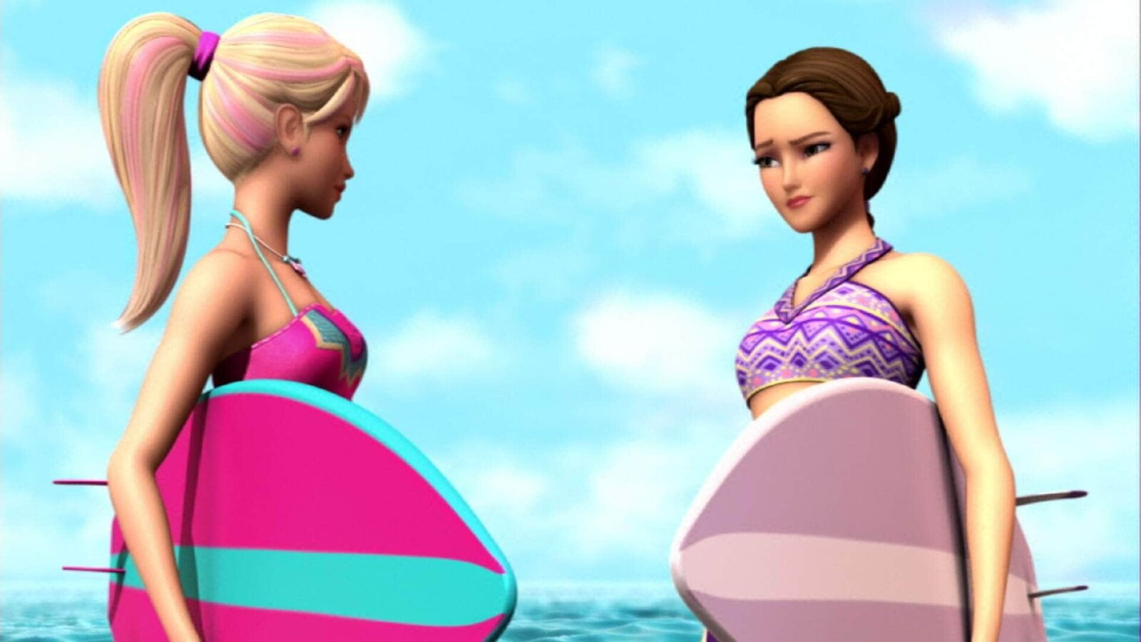 Barbie und das Geheimnis von Oceana 2Merliah und ihre Erzrivalin Kylie (re.) kämpfen um die Surfweltmeisterschaft.Bild: © Super RTL