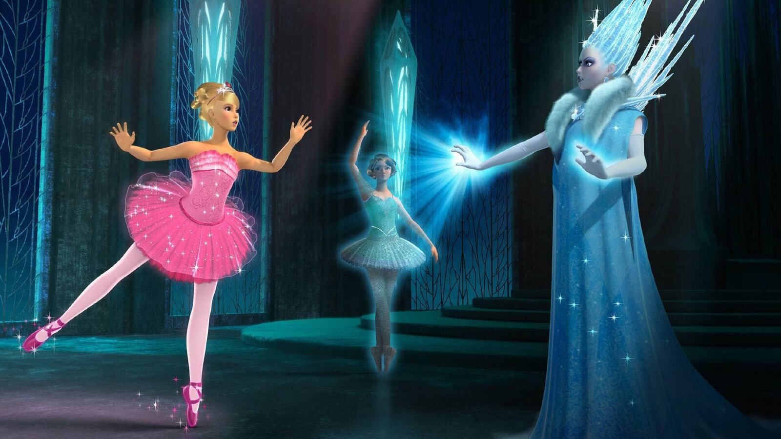 Die verzauberten BallettschuheKristyn (li.) und Hailey (Mi.) wollen die böse Schneekönigin vertreiben, doch dafür müssen sie einen Balletttanz ohne Fehler vorführen. Kristyn sucht sich ihr Lieblingstück aus: Schwanensee.Bild: © SUPER RTL Das SUPER RTL-Bildmaterial darf nur zur redaktionellen Berichterstattung im Zusammenhang mit der jeweiligen Sendung unter Angabe der Credits und Beachtung der unter http://kommunikation.supe